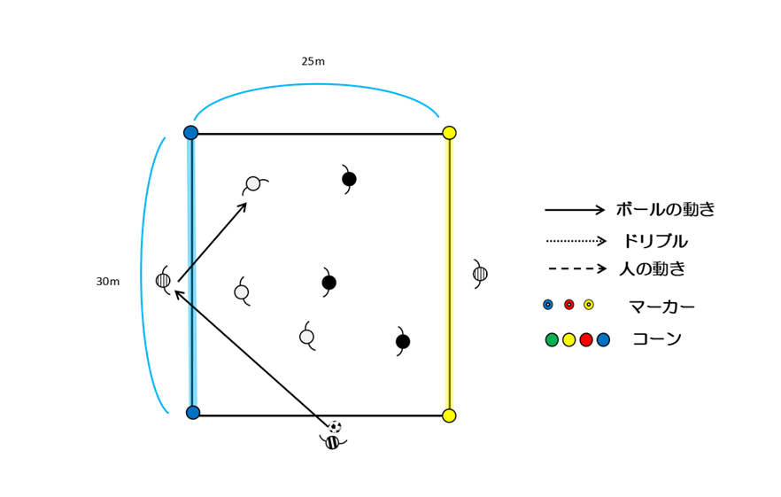 - ゴールがない(もってない)ときにできるスモールサイドゲーム